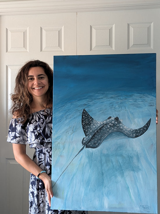 Hi, I’m Katherine—a Canadian-Peruvian wildlife artist creating from the shores of Southern Ontario, where lake water meets sky and reminds me of the Pacific Coast that raised me.I grew up by the ocean in Lima, Peru, and to this day, I carry that saltwater rhythm in my heart. The sea taught me how to feel—deeply, wildly, safely. It was my first language of peace. And when words failed me, art became the way I remembered who I was.
